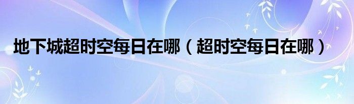 大家好,小晋来为大家解答以下问题,关于地下城超时空每日在哪,超时空每日在哪很多人还不知道,今天让我们一起来看看吧!