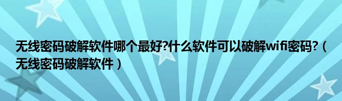 无线密码破解软件哪个最好?什么软件可以破解wifi密码?(无线密码破解软件)
