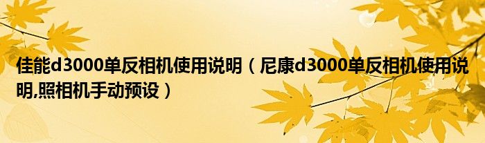大家好,小常来为大家解答以上问题。佳能d3000单反相机使用说明,尼康d3000单反相机使用说明,照相机手动预设很多人还不知道,现在让我们一起来看看吧!