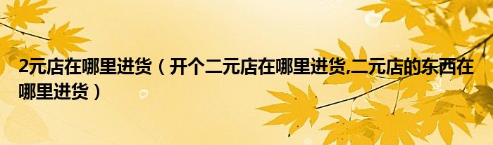 大家好,小常来为大家解答以上问题。2元店在哪里进货,开个二元店在哪里进货,二元店的东西在哪里进货很多人还不知道,现在让我们一起来看看吧!