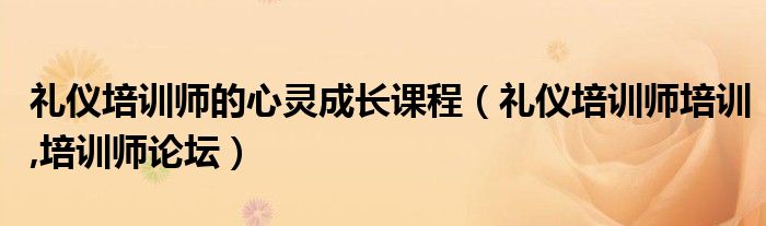 大家好,小常来为大家解答以上问题。礼仪培训师的心灵成长课程,礼仪培训师培训,培训师论坛很多人还不知道,现在让我们一起来看看吧!