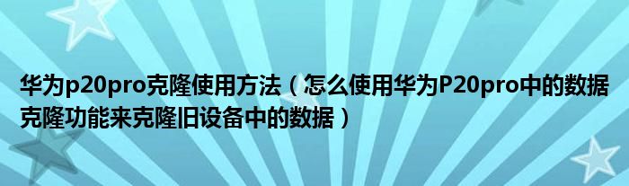 大家好,今天小悦来为大家解答以上问题。华为p20pro克隆使用方法,怎么使用华为P20pro中的数据克隆功能来克隆旧设备中的数据很多人还不知道,现在让我们一起来看看吧!