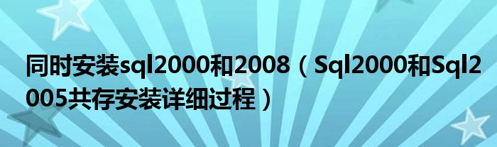 大家好,今天小悦来为大家解答以上问题。同时安装sql2000和2008,Sql2000和Sql2005共存安装详细过程很多人还不知道,现在让我们一起来看看吧!