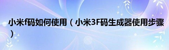 大家好,今天小悦来为大家解答以上问题。小米f码如何使用,小米3F码生成器使用步骤很多人还不知道,现在让我们一起来看看吧!