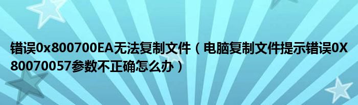 大家好,今天小悦来为大家解答以上问题。错误0x800700EA无法复制文件,电脑复制文件提示错误0X80070057参数不正确怎么办很多人还不知道,现在让我们一起来看看吧!