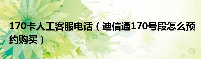 大家好,今天小悦来为大家解答以上问题。170卡人工客服电话,迪信通170号段怎么预约购买很多人还不知道,现在让我们一起来看看吧!