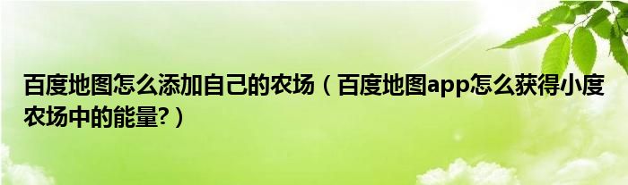 大家好,小太来为大家解答以上问题。百度地图怎么添加自己的农场,百度地图app怎么获得小度农场中的能量?很多人还不知道,现在让我们一起来看看吧!
