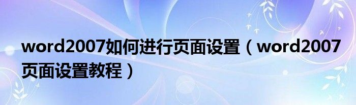 word2007如何进行页面设置(word2007页面设置教程)