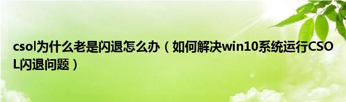 大家好,小太来为大家解答以上问题。csol为什么老是闪退怎么办,如何解决win10系统运行CSOL闪退问题很多人还不知道,现在让我们一起来看看吧!