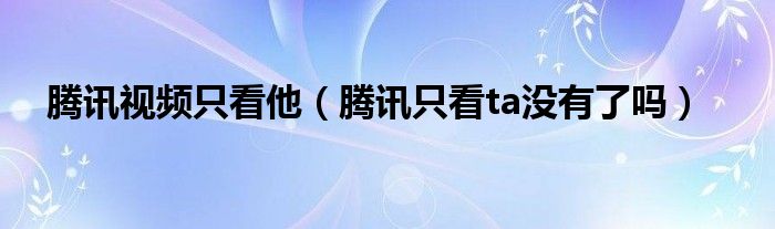 大家好,跳跳为你解答以上问题。腾讯视频只看他,腾讯只看ta没有了吗这个问题很多人还不知道,现在让我们一起来看看吧!