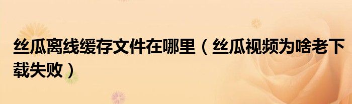 大家好,跳跳为你解答以上问题。丝瓜离线缓存文件在哪里,丝瓜视频为啥老下载失败这个问题很多人还不知道,现在让我们一起来看看吧!