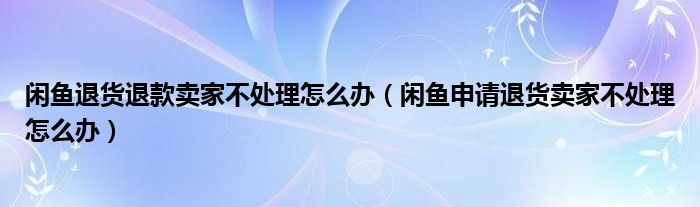 大家好,跳跳为你解答以上问题。闲鱼退货退款卖家不处理怎么办,闲鱼申请退货卖家不处理怎么办这个问题很多人还不知道,现在让我们一起来看看吧!