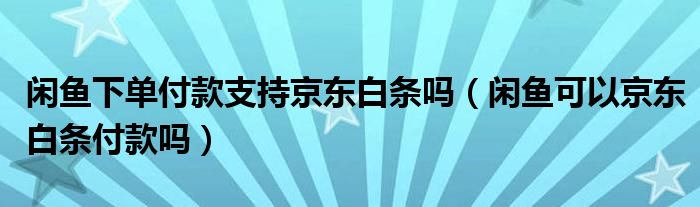 闲鱼下单付款支持京东白条吗(闲鱼可以京东白条付款吗)