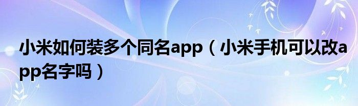 大家好,熊熊为你解答以上问题。小米如何装多个同名app,小米手机可以改app名字吗这个很多人还不知道,现在让我们一起来看看吧!