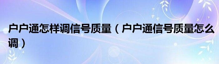 大家好,小晋来为大家解答以下问题,关于户户通怎样调信号质量,户户通信号质量怎么调很多人还不知道,今天让我们一起来看看吧!