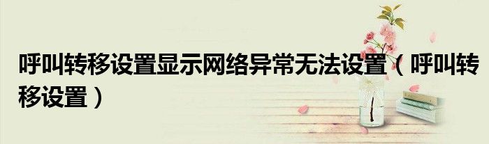 大家好,小晋来为大家解答以下问题,关于呼叫转移设置显示网络异常无法设置,呼叫转移设置很多人还不知道,今天让我们一起来看看吧!