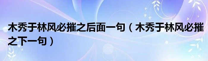 大家好,小晋来为大家解答以下问题,关于木秀于林风必摧之后面一句,木秀于林风必摧之下一句很多人还不知道,今天让我们一起来看看吧!