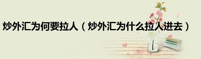 炒外汇为何要拉人(炒外汇为什么拉人进去)