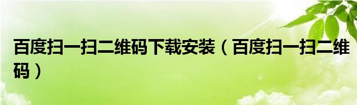 百度扫一扫二维码下载安装(百度扫一扫二维码)