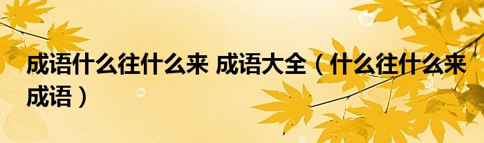 成语什么往什么来 成语大全(什么往什么来成语)