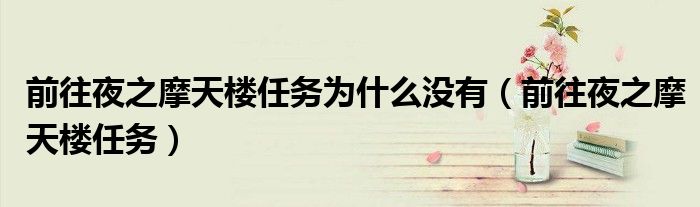 大家好,小晋来为大家解答以下问题,关于前往夜之摩天楼任务为什么没有,前往夜之摩天楼任务很多人还不知道,今天让我们一起来看看吧!