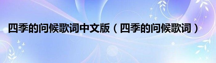 关于四季的问候歌词中文版,四季的问候歌词这个很多人还不知道,今天菲菲来为大家解答以上的问题,现在让我们一起来看看吧!