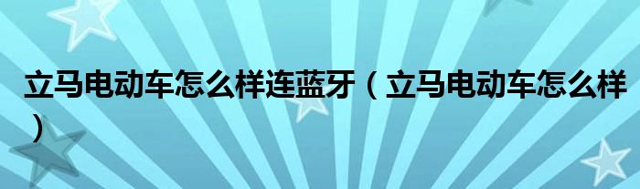 关于立马电动车怎么样连蓝牙,立马电动车怎么样这个很多人还不知道,今天菲菲来为大家解答以上的问题,现在让我们一起来看看吧!