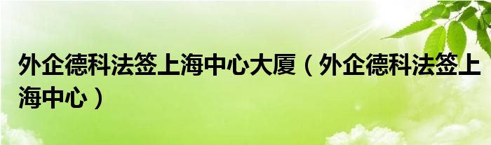 关于外企德科法签上海中心大厦,外企德科法签上海中心这个很多人还不知道,今天菲菲来为大家解答以上的问题,现在让我们一起来看看吧!