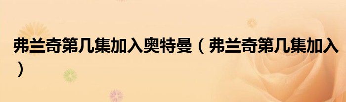 关于弗兰奇第几集加入奥特曼,弗兰奇第几集加入这个很多人还不知道,今天菲菲来为大家解答以上的问题,现在让我们一起来看看吧!