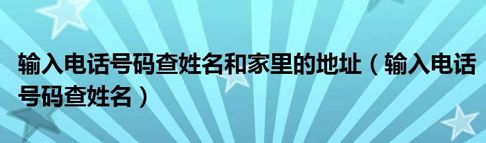 大家好,小晋来为大家解答以下问题,关于输入电话号码查姓名和家里的地址,输入电话号码查姓名很多人还不知道,今天让我们一起来看看吧!