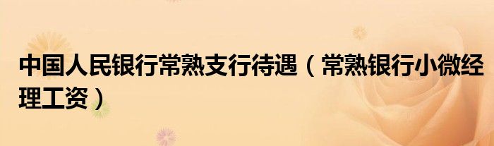 中国人民银行常熟支行待遇(常熟银行小微经理工资)