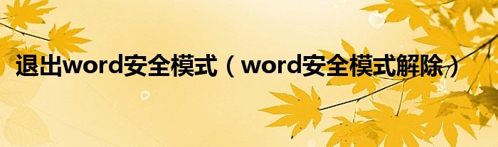 大家好,来宝来为大家解答以下问题,退出word安全模式,word安全模式解除很多人还不知道,今天让我们一起来看看吧!