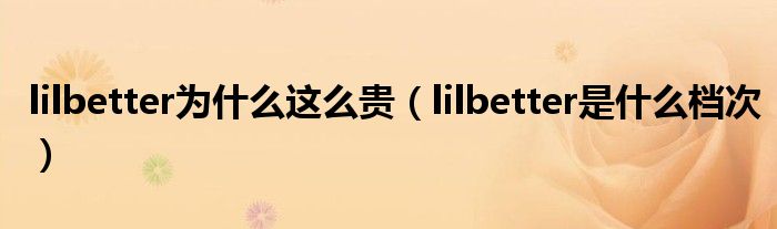 大家好,小晋来为大家解答以下问题,关于lilbetter为什么这么贵,lilbetter是什么档次很多人还不知道,今天让我们一起来看看吧!