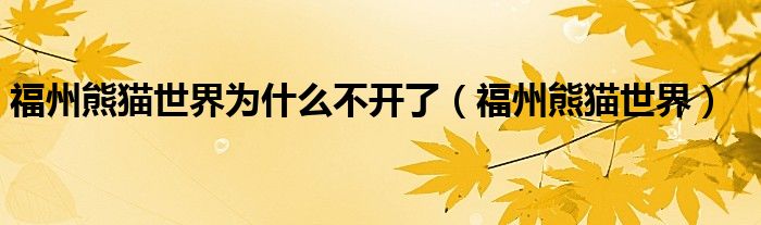 福州熊猫世界为什么不开了(福州熊猫世界)