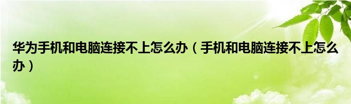 华为手机和电脑连接不上怎么办(手机和电脑连接不上怎么办)