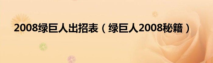 大家好,小晋来为大家解答以下问题,关于2008绿巨人出招表,绿巨人2008秘籍很多人还不知道,今天让我们一起来看看吧!