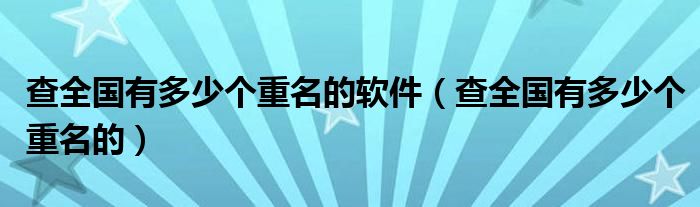 大家好,小晋来为大家解答以下问题,关于查全国有多少个重名的软件,查全国有多少个重名的很多人还不知道,今天让我们一起来看看吧!