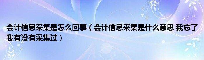 关于会计信息采集是怎么回事,会计信息采集是什么意思 我忘了我有没有采集过这个很多人还不知道,今天菲菲来为大家解答以上的问题,现在让我们一起来看看吧!