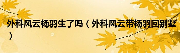 大家好,小晋来为大家解答以下问题,关于外科风云杨羽生了吗,外科风云带杨羽回别墅很多人还不知道,今天让我们一起来看看吧!
