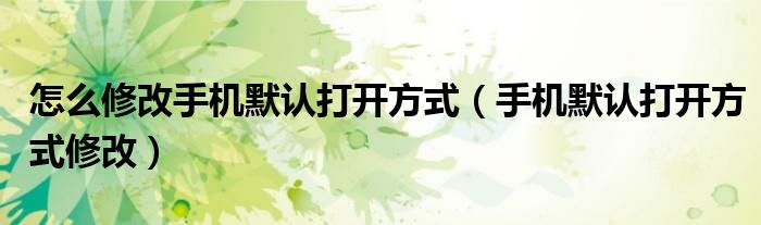怎么修改手机默认打开方式(手机默认打开方式修改)