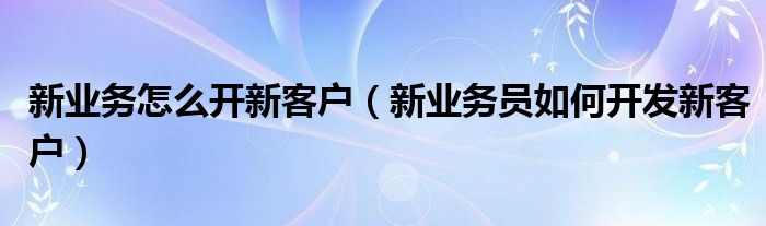 关于新业务怎么开新客户,新业务员如何开发新客户这个很多人还不知道,今天菲菲来为大家解答以上的问题,现在让我们一起来看看吧!