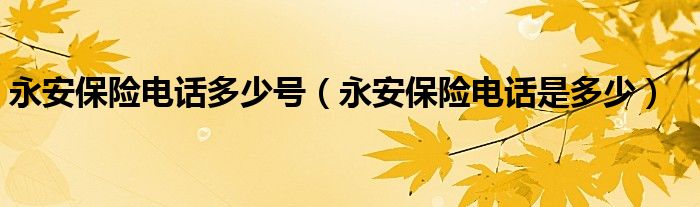 关于永安保险电话多少号,永安保险电话是多少这个很多人还不知道,今天菲菲来为大家解答以上的问题,现在让我们一起来看看吧!