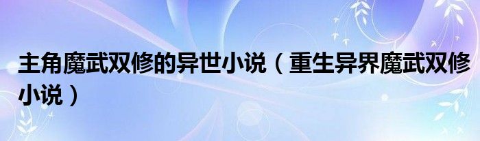 关于主角魔武双修的异世小说,重生异界魔武双修小说这个很多人还不知道,今天菲菲来为大家解答以上的问题,现在让我们一起来看看吧!
