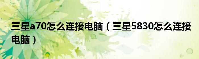 三星a70怎么连接电脑,三星5830怎么连接电脑很多人还不知道,乐乐来为大家解答以上问题,现在让我们一起来看看吧!