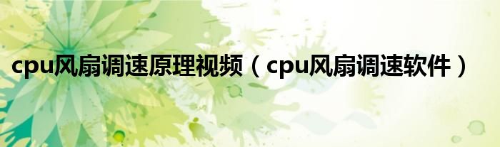 cpu风扇调速原理视频,cpu风扇调速软件很多人还不知道,乐乐来为大家解答以上问题,现在让我们一起来看看吧!