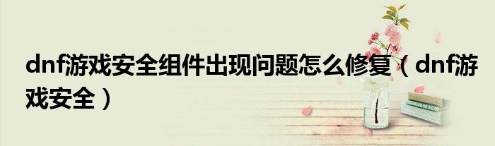 dnf游戏安全组件出现问题怎么修复,dnf游戏安全很多人还不知道,乐乐来为大家解答以上问题,现在让我们一起来看看吧!