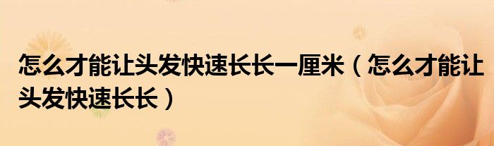 关于怎么才能让头发快速长长一厘米,怎么才能让头发快速长长这个很多人还不知道,今天菲菲来为大家解答以上的问题,现在让我们一起来看看吧!