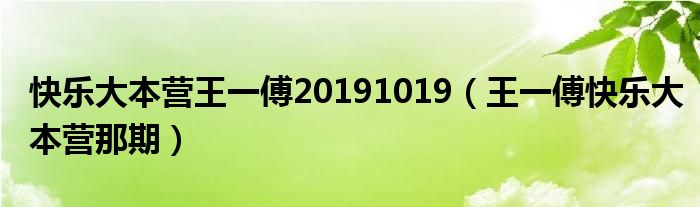 快乐大本营王一傅20191019(王一傅快乐大本营那期)