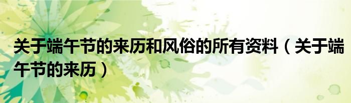 关于关于端午节的来历和风俗的所有资料,关于端午节的来历这个很多人还不知道,今天菲菲来为大家解答以上的问题,现在让我们一起来看看吧!