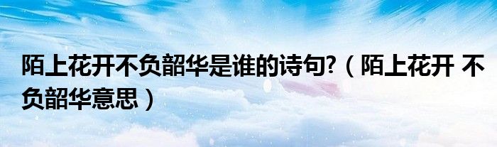 大家好,小晋来为大家解答以下问题,关于陌上花开不负韶华是谁的诗句?,陌上花开 不负韶华意思很多人还不知道,今天让我们一起来看看吧!